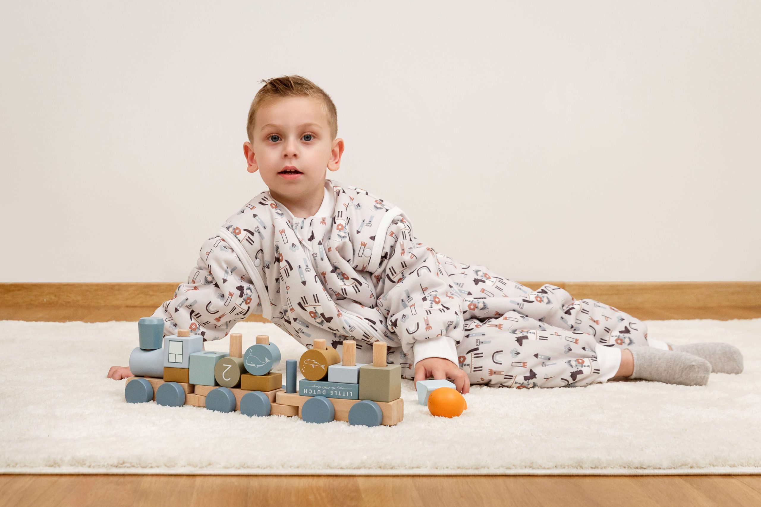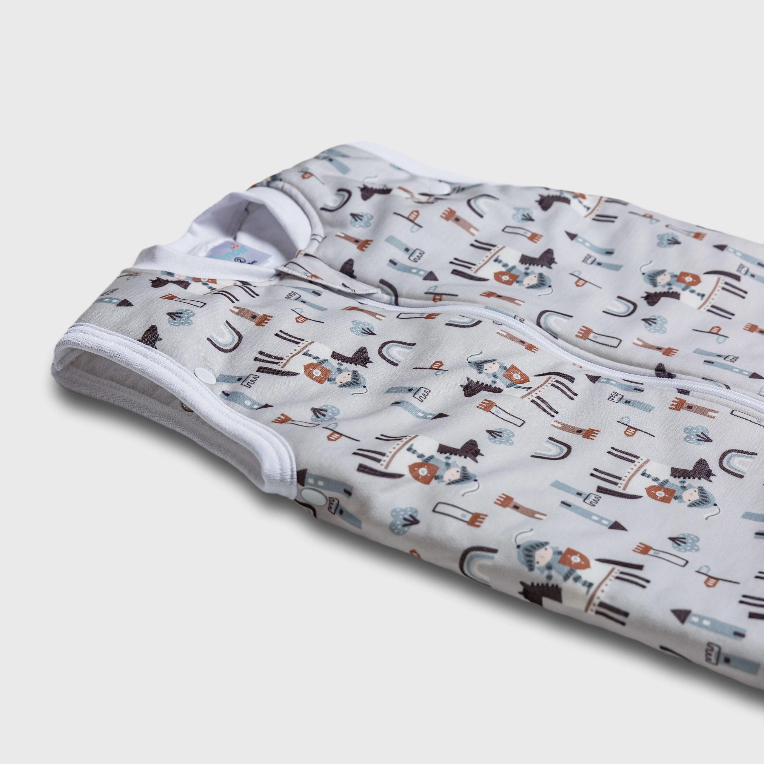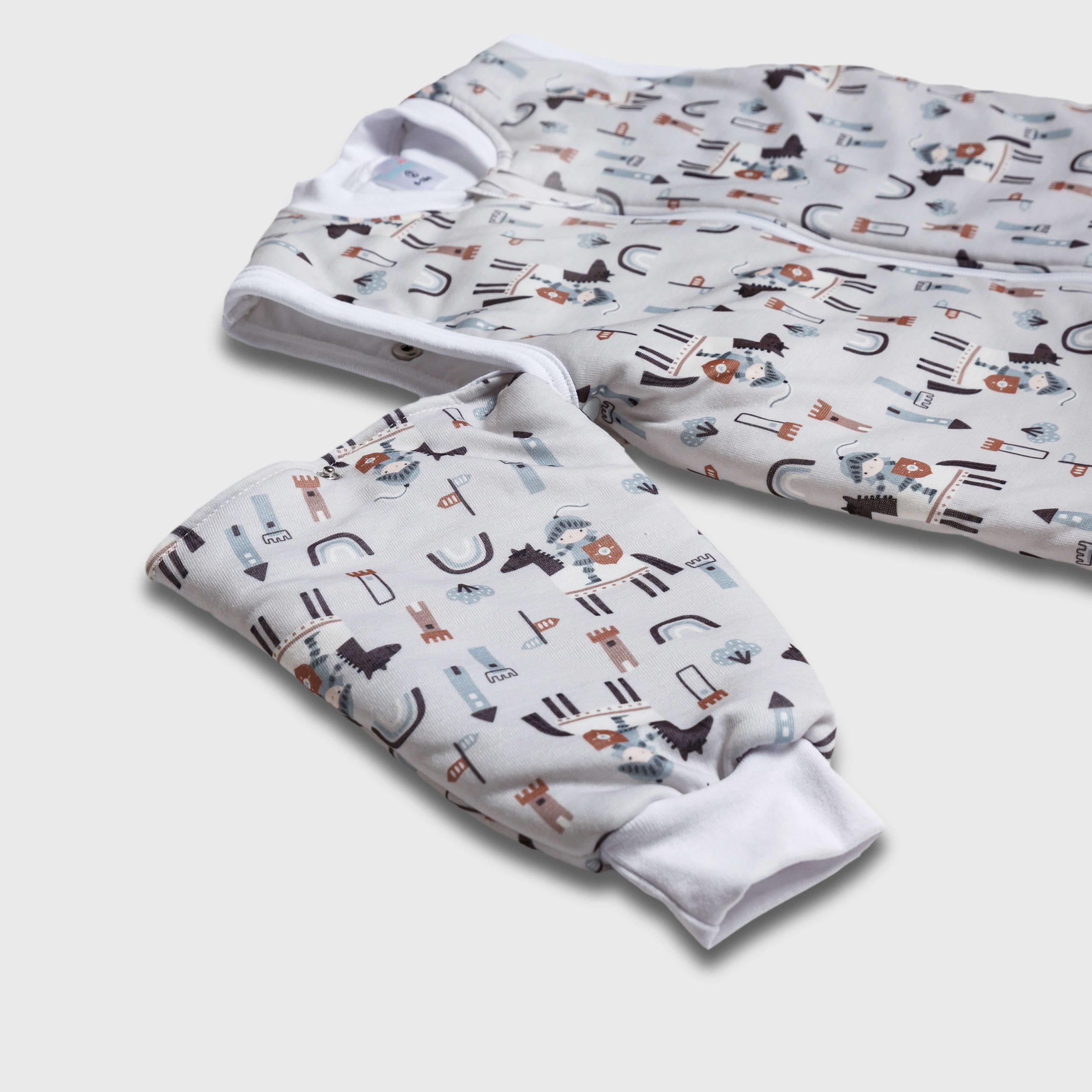 Τα αποσπώμενα μανίκια προσφέρουν τη δυνατότητα ρύθμισης της θερμοκρασίας, καθιστώντας τον υπνόσακο κατάλληλο για μεγαλύτερο εύρος εποχών. Το μακρύ φερμουάρ με προστατευτικό τελείωμα εξασφαλίζει εύκολη εφαρμογή και γρήγορη αλλαγή πάνας, χωρίς να ενοχλεί το παιδί.